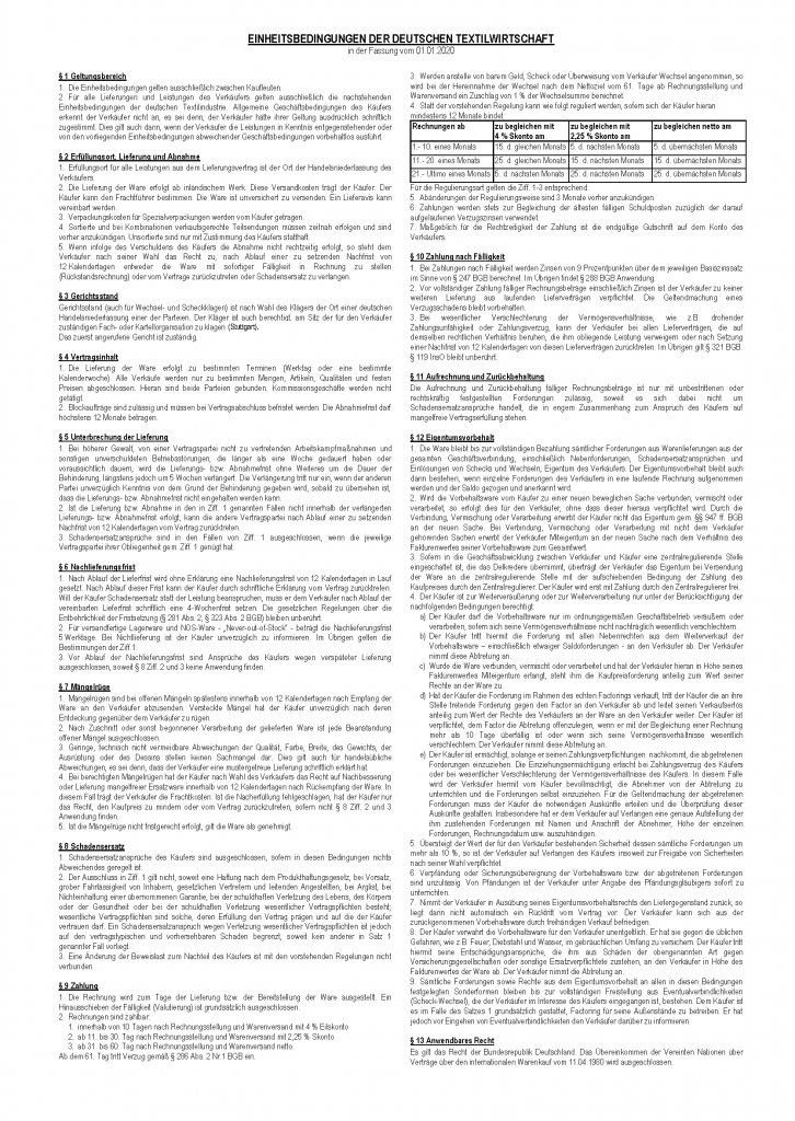 EINHEITSBEDINGUNGEN DER DEUTSCHEN TEXTILWIRTSCHAFT